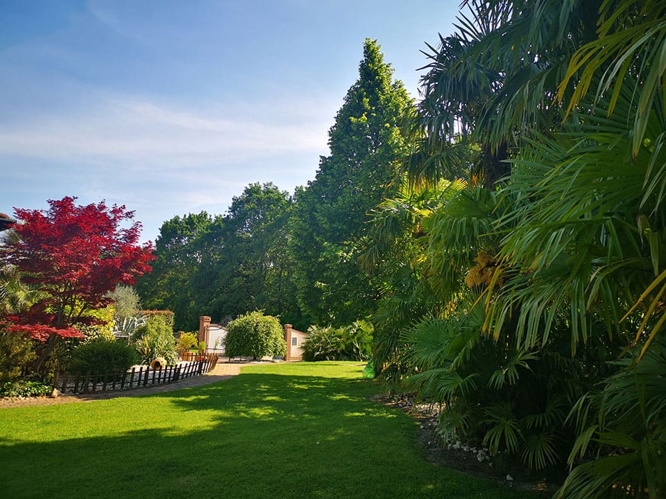 L’ampio parco è suddiviso in aree tematiche dedicate all’essenza di riferimento come palme, ulivi, agavi ed alberi ad alto fusto, che creano un giardino piacevole ed interessante durante tutte le stagioni con fioriture, fruttificazione e foliage.